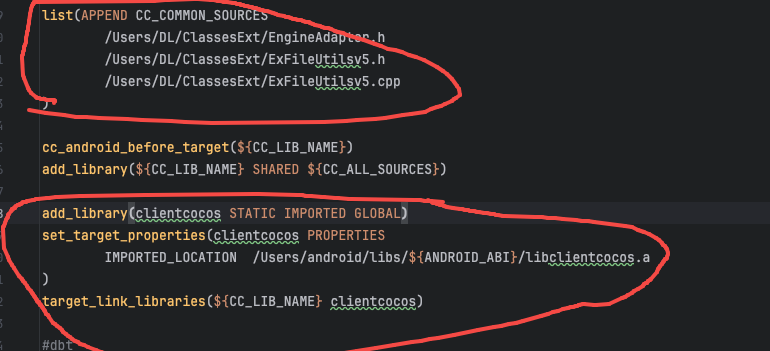 IMPORTED_LOCATION 静态库的目录/${ANDROID_ABI}/libclientcocos.a