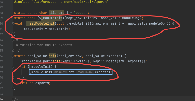 找到cocos/platform/openharmony/napi/NapiInit.cpp文件